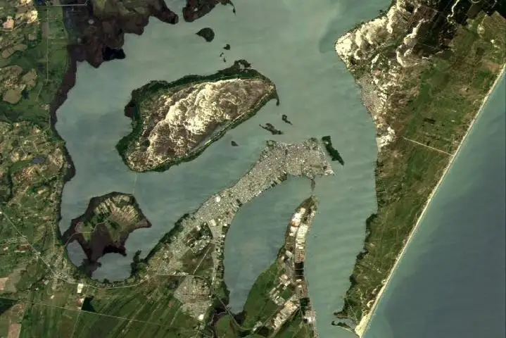 KazSTSat, пролетая над территорией Южной Америки, сделал снимок города Рио-Гранде, крупнейшего порта на юге Аргентины, с разрешением 17метров.