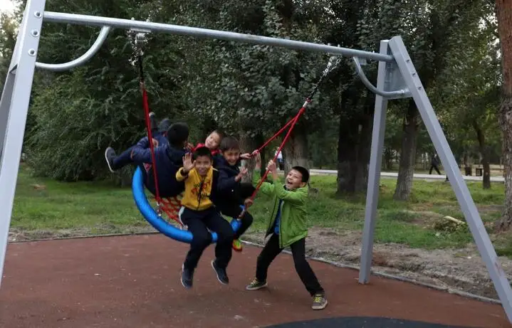 Данный игровой комплекс - единственная зона для детей, оснащенная гимнастическими, спортивными и игровыми сооружениями, аттракционами, качелями, каруселями и горками, построен на сумму более 44,5 миллионов тенге.