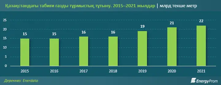 2015–2021 жылдар аралығында газ тұтыну 7 млрд текше метрге жуық артты, ал болашақта ол тек өсіп отырмақ. Өсімге жаңа өнеркәсіптік нысандар мен газхимиялық ірі жобалардың іске қосылуы ықпал етуде. Газ экологиялық таза отынға көшуде маңызды ресурсқа айналады.