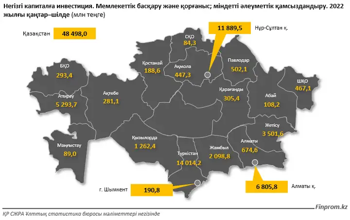 Инвестициялар көлемінің ең көп жылдық өсімі Қызылорда облысында байқалды: бір жылда 17,6 есе өсіп, 1,3 млрд теңгеге жетті.