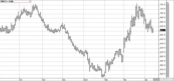 Майский фьючерс на пшеницу за прошедшую неделю снизился на 9.5 цента (-1.42%).