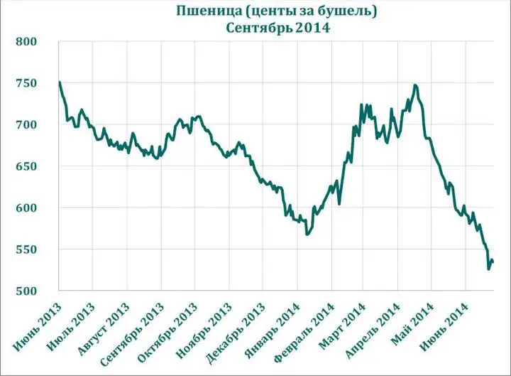 Повышение оценок запасов пшеницы США, а также производства в сезоне 2014-2015 в совокупности с хорошим состоянием посевов яровых вновь надавили на цену. Цена сентябрьского контракта пшеницы на прошедшей неделе (09.07.2014 – 15.07.2014) потеряла 3%.