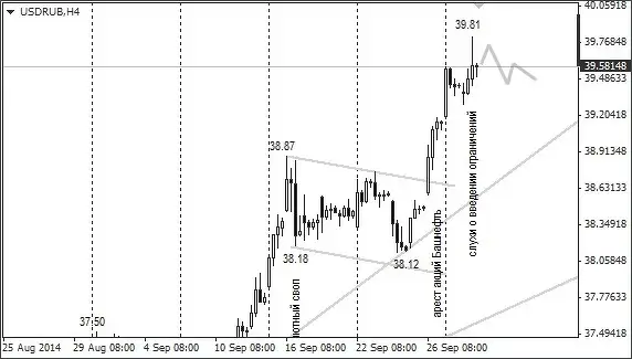 Во вторник доллар США на фоне его роста на рынке Форекс и слухов, что ЦБ РФ может ввести ограничения на операции с капиталом, обновил исторический максимум. Вечером ЦБ РФ опроверг эти слухи и заявил, что не намерен вводить ограничения на движение капитала. Рост доллара остановился на отметке 39,81, а торги завершились на уровне 39,58.