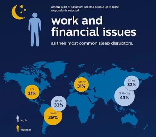 Ко Всемирному дню сна, который отмечается сегодня, 13 марта, компания Philips провела глобальное исследование, посвященное качественному и здоровому ночному отдыху. В нем приняли участие порядка 8 000 человек из 10 стран. Согласно полученным данным, стресс на работе и финансовые проблемы оказывают сильное влияние на качество сна. Так, абсолютное большинство опрошенных (84%) не спят по ночам, поскольку переживают из-за своего материального положения и карьеры. Здоровый сон – необходимое условие для полноценной жизни, однако больше половины респондентов (57%) признаются, что, испытывая трудности, не принимают никаких мер для его улучшения.