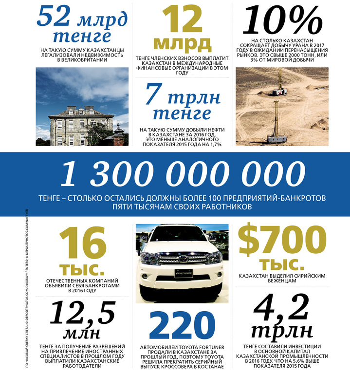 На какую сумму легализовали казахстанцы недвижимость в Великобритании, сколько задолжали предприятия-банкроты и какую сумму выделил Казахстан сирийским беженцам